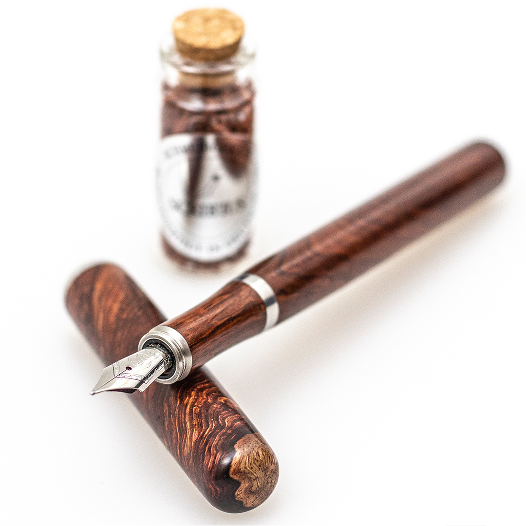Unsere handgefertigten Füllfederhalter aus Holz entscheiden sich ganz deutlich von anderen Herstellern: Durch das komplett aus Holz gedrechselte Griffstück können wir die Länge und den Durchmesser komplett an die Bedürfnisse der Schreibhand anpassen.